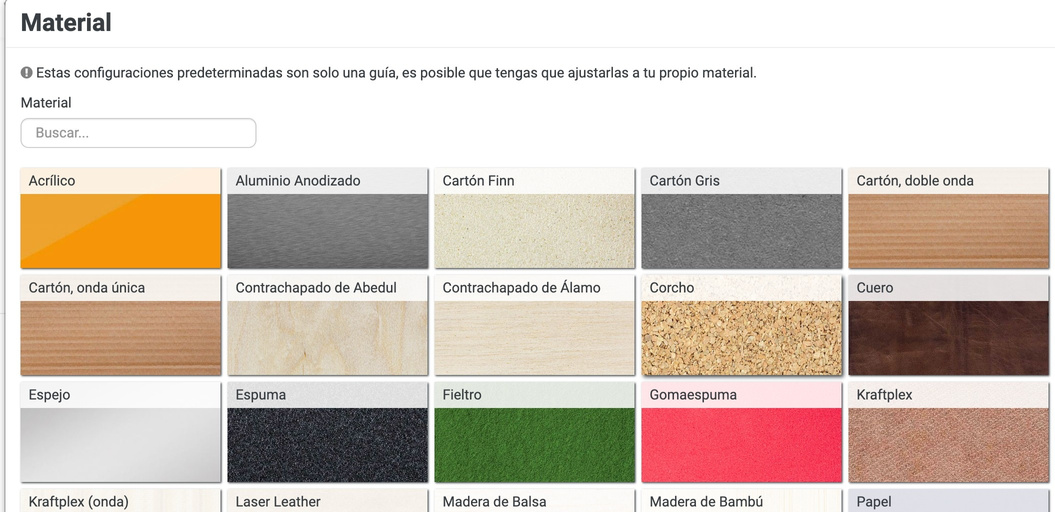 Despois aparecerá a pantalla para seleccionar material. Si non hai o que se quere usar, seleccionar o máis parecido (é posible engadir materiais á biblioteca).